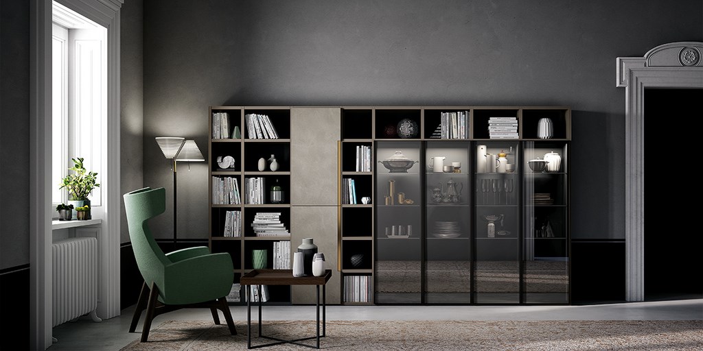 Massima modularità delle composizioni, design, raffinatezza estetica e ricerca continua di nuovi materiali, essenze e finiture di pregio.